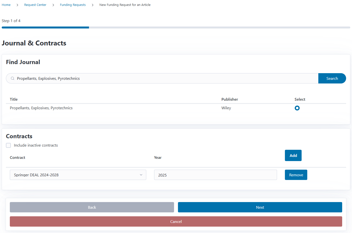Search by journal, publisher, or contract