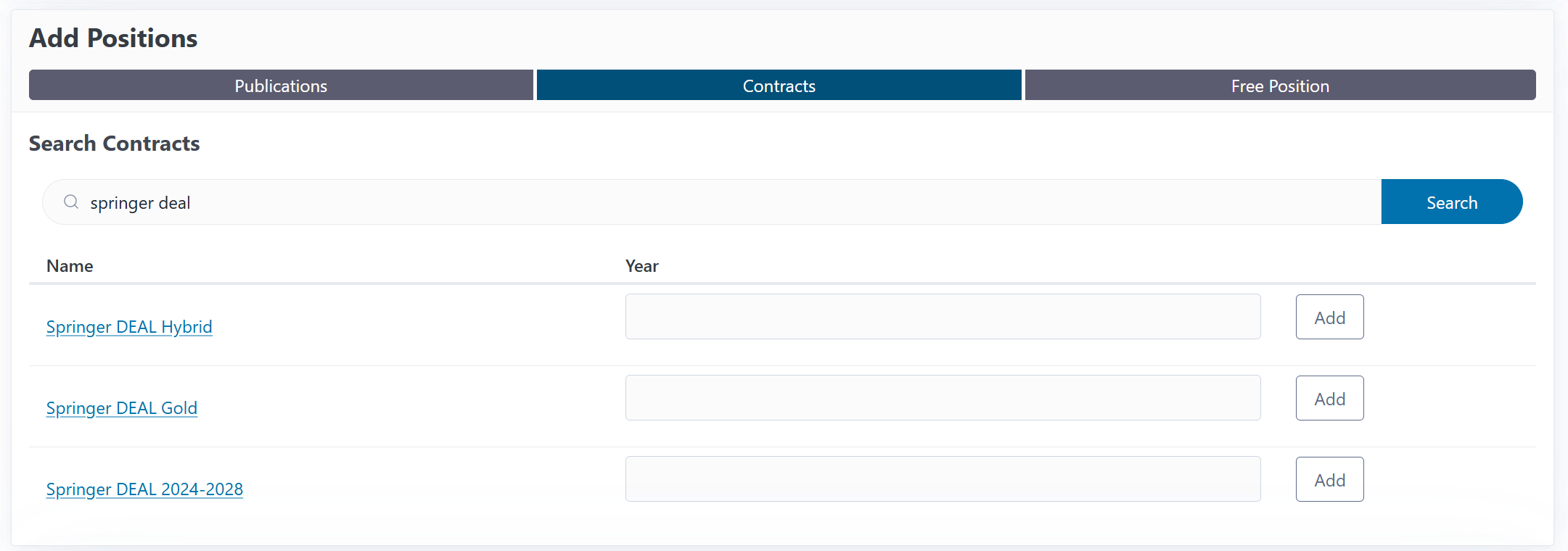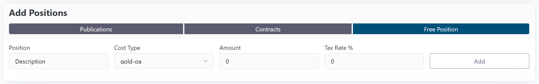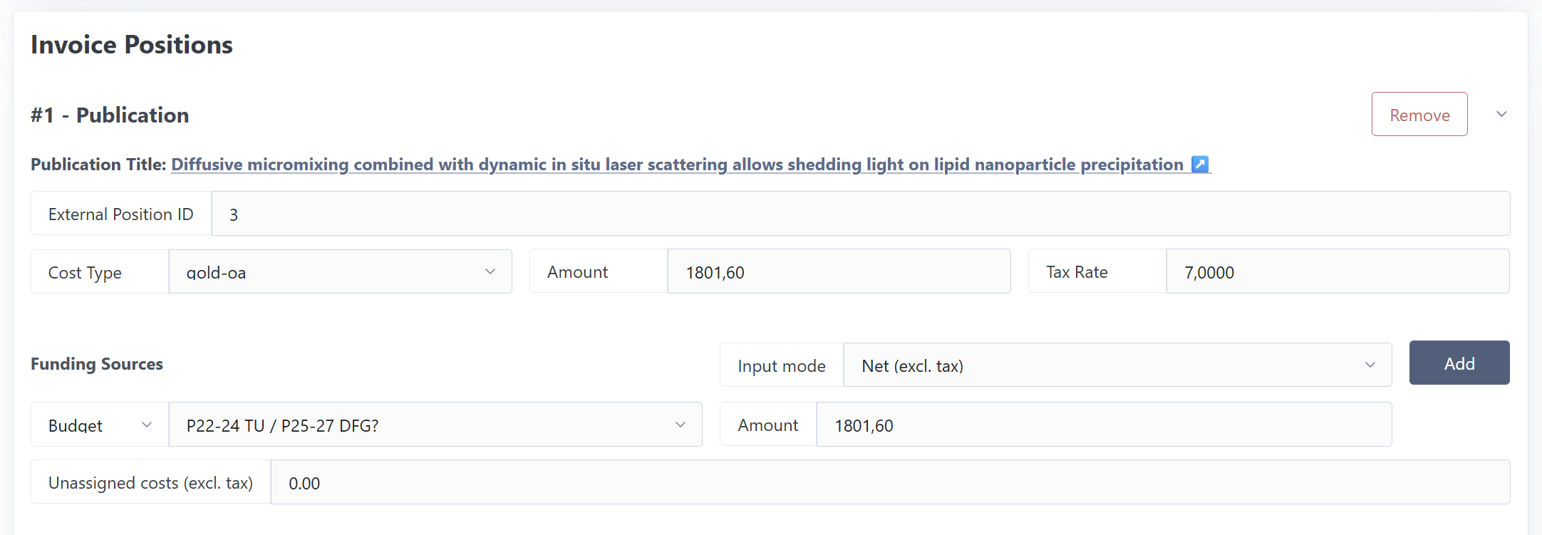 Link an invoice position directly to a publication in your system. This is the most common type for Article Processing Charges (APCs).